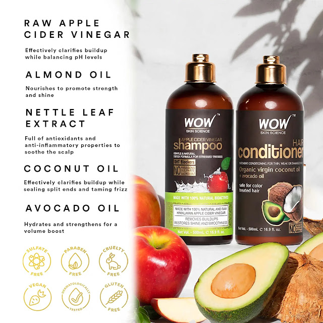 WOW Skin Science Apple Cider Vinegar Shampoo & Conditioner Set - Men and Womens Gentle Shampoo & Conditioner Set for Dry Hair - Increase Gloss, Reduce Split Ends - Sulfate, Silicone & Paraben Free ( amazon associats )
